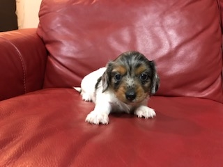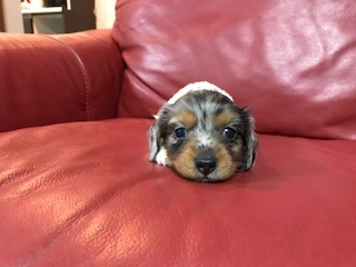 ミニチュア・ダックスフンド(ロング) シルバーダップルパイボールド ♀(女の子) 愛知県【 ブリーダーズ 】