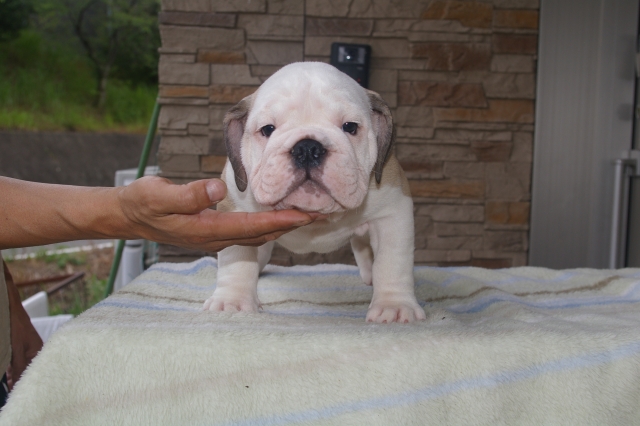 | コメント | 真っ白なお顔がキュートな男の子です。 性格もおっとりしています。 食欲もあり毎日元気に兄妹と遊んで、その遊びの中で犬の社会生活をしっかり学んでいます。 なのでオーナー様の所に行ってもトラブルは少ないと思います。 両親も当犬舎にいますので是非見てあげて下さい。 初めてブルドッグをお迎えしたい方にも安心できる様に万全なサポートしていきます。 写真だと本当の姿が出ないので是非足をお運び下さい。 写真より実際はかわいいですよ。 遠方の方は出張して仔犬ちゃんを見て頂く事も可能ですのでお気軽にお問合せ下さい。 出張の場合はかかった費用はご負担ください。 ご見学と出張は土曜日、日曜日のみとさせて頂きます。 ワクチン接種済みですので土日でしたらその日のお迎えでも大丈夫です |