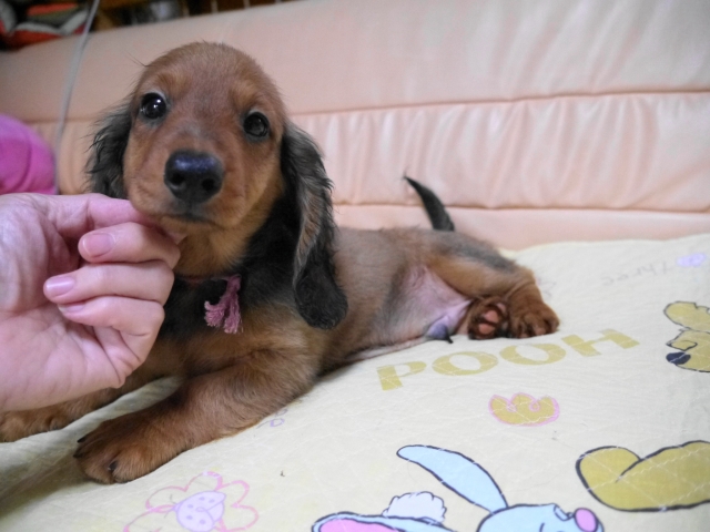 亡くなった愛犬達と同じ、 ワイヤーダックスの子犬を探していましたが、珍しい犬種という事もあり、 なかなか出会えませんでした。 諦めかけた頃、こちらのサイトで可愛い子犬を見つけ、思いきってメールをさせて頂きました。 遠藤ブリーダー様の迅速丁寧な対応で、 お陰様で無事に子犬を迎える事が出来ました。 本当にありがとうございました。 ブリーダーズ様にも感謝致します。 (北海道 女性)