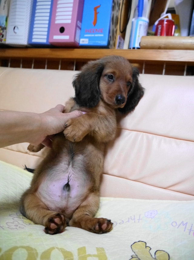 | コメント | パパはJKCチャンピオンのルフィ君(レッド) ママはJCKチャンピオン直娘でショーチャレンジ中のキャメロンちゃん(ブラック&タン) 子犬はレッドの男の子です。 血統の良い正統派のスタンダードロングダックスです。 離乳食を始めてだんだんしっかりとしてきました。 ワクチン接種と健康診断も実施済みですので、ご見学の際にそのままお迎え頂けます。 パパもおりますので、将来的にどんな感じになるか見ていただけます。 とにかく性格の良い家庭犬としては最適の犬種です。 最新の写真や動画もお送りできます。 いちどスタンダードダックスを飼った方は子の犬種以外は考えられなくなるくらいに魅力のある、理解力のある犬種ですので、ぜひお問い合わせをお待ちしております。 |