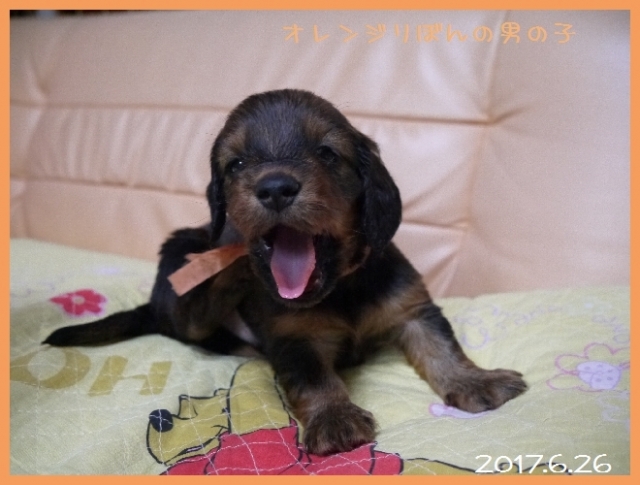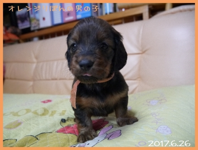 亡くなった愛犬達と同じ、 ワイヤーダックスの子犬を探していましたが、珍しい犬種という事もあり、 なかなか出会えませんでした。 諦めかけた頃、こちらのサイトで可愛い子犬を見つけ、思いきってメールをさせて頂きました。 遠藤ブリーダー様の迅速丁寧な対応で、 お陰様で無事に子犬を迎える事が出来ました。 本当にありがとうございました。 ブリーダーズ様にも感謝致します。 (北海道 女性)