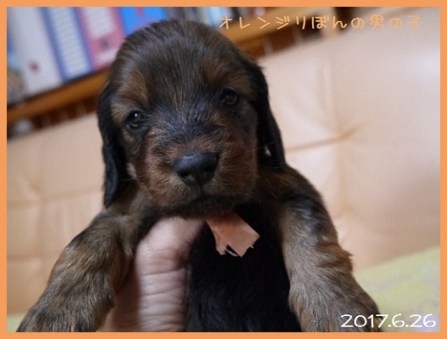 | コメント | パパはJKCチャンピオンのルフィ君(レッド) ママはJCKチャンピオン直娘でショーチャレンジ中のキャメロンちゃん(ブラック&タン) 子犬はレッドの男の子です。 血統の良い正統派のスタンダードロングダックスです。 離乳食を始めてだんだんしっかりとしてきました。 7月下旬頃、ワクチン接種と健康診断を実施後にお渡しが可能です。 パパもおりますので、将来的にどんな感じになるか見ていただけます。 とにかく性格の良い家庭犬としては最適の犬種です。 いちどスタンダードダックスを飼った方は子の犬種以外は考えられなくなるくらいに魅力のある、理解力のある犬種ですので、ぜひお問い合わせをお待ちしております。 |