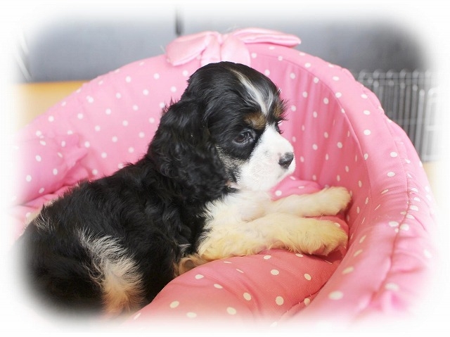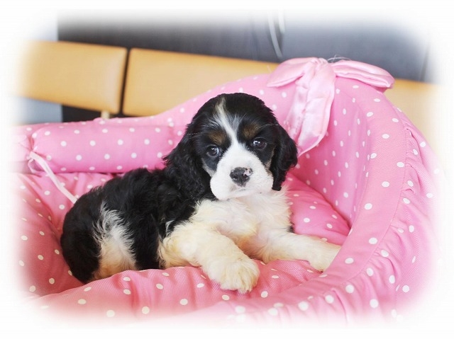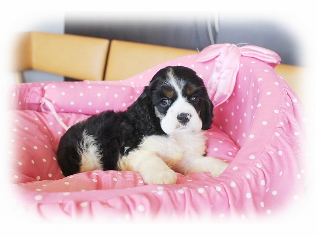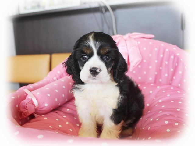 アメリカン・コッカー・スパニエル ホワイト&ブラック&タン ♂(男の子) 大阪府【 ブリーダーズ 】