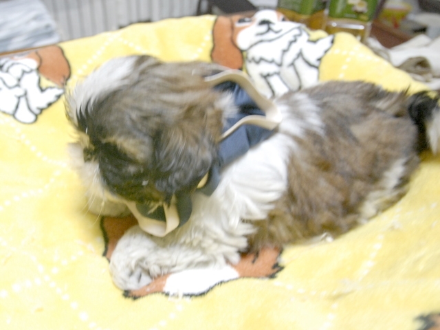 | コメント | お父さんJKCチャンピオンのラッキー君、お母さんJKCチャンピオン直子のビッキーちゃんから生れたキュートな女の子です。(紺リボンちゃん) 現在の健康状態は、問題有りません。 噛み合わせの欠点は現時点でありません。 |