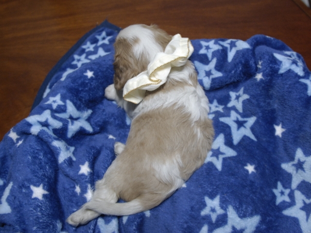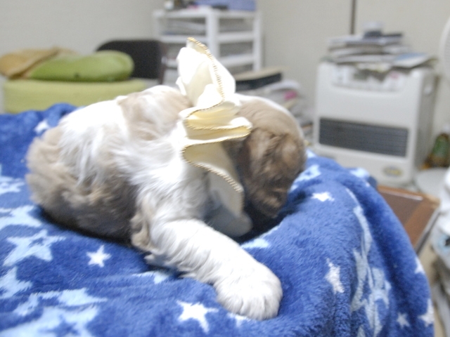 | コメント | お父さんはJKCチャンピオンの吉宗君、お母さんはチャンピオン直子のスザンヌちゃんから生れたキュートな女の子です。(白リボンちゃん) 健康状態は、問題有りません。 |