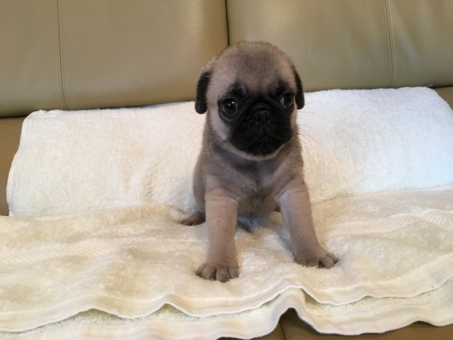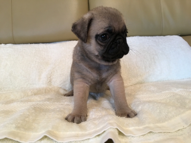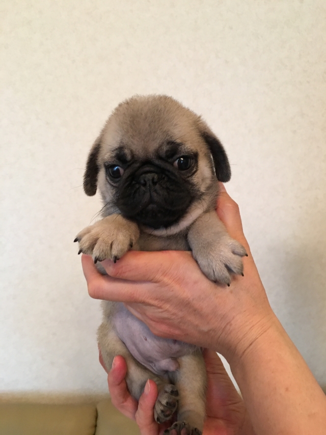 パグの飼育歴は30年以上になります。今年親の代から買っていた 黒パグを亡くしてから家を埋め尽くしているパググッズを見るたびに いつか新しい仔を迎えたいと思うようになりました。 北関東でブリーダーさんを探しているうちに木村様を知り、見学、購入の運びとなりました。 このたび性格も大変おおらかな素晴らしい仔犬をお譲りいただき大変感謝しております。 (茨城県 男性)