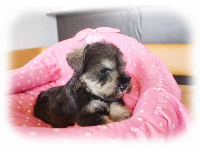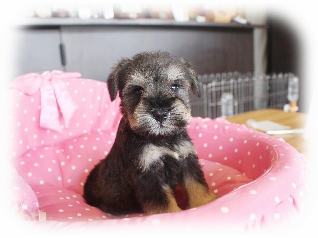 シュナウザーを主力にされているブリーダーさんだと認識しており、ボスちゃんはどうかなあと正直不安でしたがとても可愛く健康的なボスちゃんをいただきました。 掲載されていた写真より実物は想像以上に可愛くて即決し見学させていただいたその日に連れて帰りました。連絡をして、翌日行きますぅって勝手な申し出にも関わらず敏速かつ親切に対応して頂き大満足です。契約に対しても一つ一つ丁寧に説明してくださり、わかりやすかったです。この度は可愛いボスちゃんとのご縁をいただき、本当に有り難うございました。 (大阪府 女性)