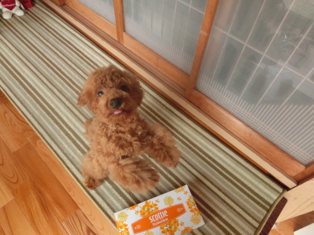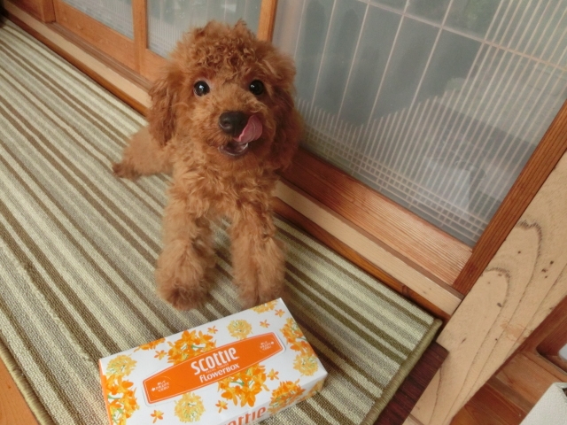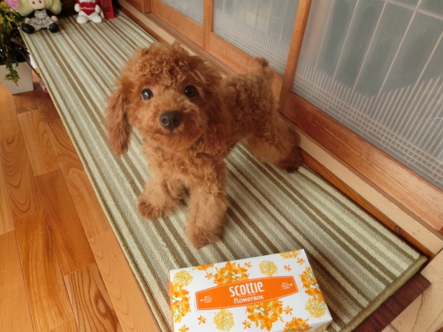 ティッシュ箱と比較只今2.2k成犬時にタイニーサイズで収まる子