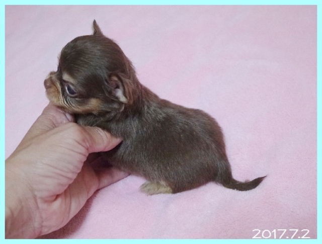| コメント | パパはJKCチャンピオン直子の北斗【ほくと】君。 ママはJKCチャンピオン直娘のアンバーちゃん。 とっても優秀で性格の良いかわいらしい両親から生まれたチョコレート&クリームの男の子です。 将来的なサイズはだいたい2キロくらいかなと思います。 お引き渡しできるのはワクチン接種と健康診断を実施後で生後60日になる8月4日以降となります。 とにかく性格が良くておとなしい両親ですので、子犬ちゃんも成長がとても楽しみな子です。 ぜひ良いご縁があってくれたらと思いますので、お問い合わせをお待ちしております。 週末はドッグショーなどで留守にしていることが多いですが、平日や週末の夜間でも対応可能です。 ご見学は事前に日時のお約束をお願いいたします。 素敵なご縁がありますように、、、、 |