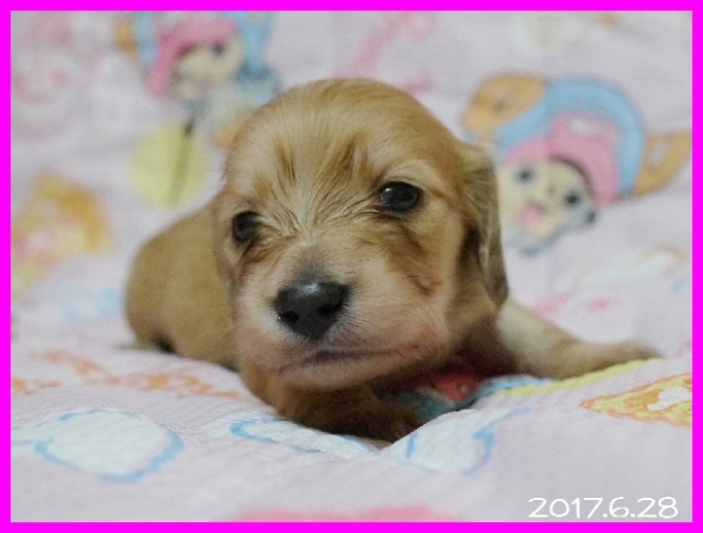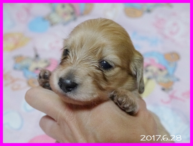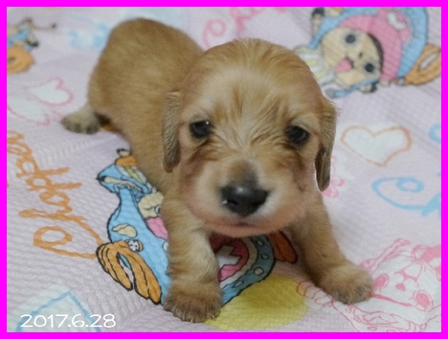 亡くなった愛犬達と同じ、 ワイヤーダックスの子犬を探していましたが、珍しい犬種という事もあり、 なかなか出会えませんでした。 諦めかけた頃、こちらのサイトで可愛い子犬を見つけ、思いきってメールをさせて頂きました。 遠藤ブリーダー様の迅速丁寧な対応で、 お陰様で無事に子犬を迎える事が出来ました。 本当にありがとうございました。 ブリーダーズ様にも感謝致します。 (北海道 女性)