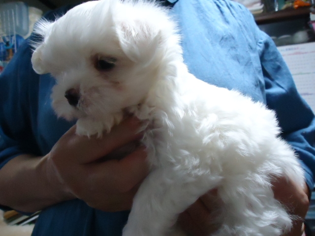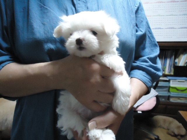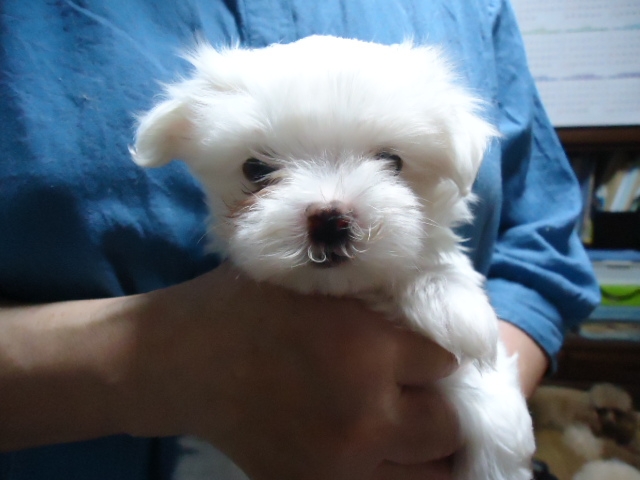 この度ご縁がありまして村島ブリーダーさんから可愛いマルチーズの男の子を譲って頂きました。犬を飼うことは初めてだったのですが2度ほど見学し、アドバイスも頂き、安心して子犬を迎えることができました。何かあれば電話でいつでも相談にのって下さるとのことで心強いです。子犬もとても元気でおトイレもすぐに覚えてとってもいい子です。ありがとうございました。(栃木県 女性)