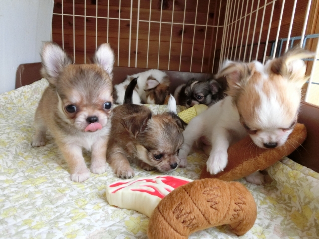 | コメント | クリクリおめめのとにかく可愛い男の子です! 短足のちびちびくんです♪ 毎日ママに甘え、兄妹たちと仲良くじゃれ合いながら大切な社会化期を過ごしています。 離乳食も兄妹と競い合って食べています。 お迎えまでにはトイレトレーニングも頑張ります。 現時点で確認できる欠点等はありませんが、ワクチン接種の時に改めて獣医さんに簡単な健康チェックをしていただきます。 お写真より実物の方がずっと可愛いです!是非ご見学にお越しください。 |