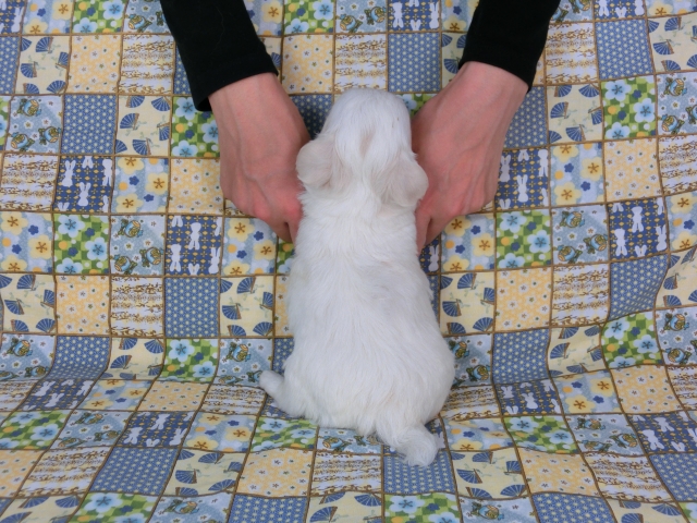 名古屋からお迎えしました。チワワちゃんを亡くし途方に暮れていた中ミックスの子迎えました。帰りの新幹線でもお利口でした。お迎えまで1ヵ月ありましたがしっかりと配慮の行き届いた対応して頂きました。預かっているあいだに社会性を学んだみたいで初日から一通り出来ました。歴史のあるブリーダ-ならではの安心です。待っているあいだも写真や動画送って下さり名前で読んで下さり初日から自分の名前わかっているかのようです。とても健康で生きがよく愛嬌最大限です。ミックスなのでどのように育つかわからないところが育てがいがあります。ご飯ももりもり食べてうんちもしっかりしています。こんな可愛く健康な仔犬をお譲り下さり感謝致します。こんなに丁寧で細部まで至れり尽くせりですみません。安心して共に暮らしていけます。この度は本当にありがとうございました。(愛知県 男性)