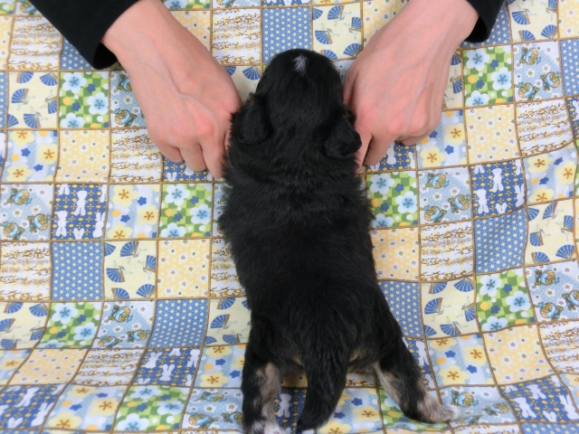 名古屋からお迎えしました。チワワちゃんを亡くし途方に暮れていた中ミックスの子迎えました。帰りの新幹線でもお利口でした。お迎えまで1ヵ月ありましたがしっかりと配慮の行き届いた対応して頂きました。預かっているあいだに社会性を学んだみたいで初日から一通り出来ました。歴史のあるブリーダ-ならではの安心です。待っているあいだも写真や動画送って下さり名前で読んで下さり初日から自分の名前わかっているかのようです。とても健康で生きがよく愛嬌最大限です。ミックスなのでどのように育つかわからないところが育てがいがあります。ご飯ももりもり食べてうんちもしっかりしています。こんな可愛く健康な仔犬をお譲り下さり感謝致します。こんなに丁寧で細部まで至れり尽くせりですみません。安心して共に暮らしていけます。この度は本当にありがとうございました。(愛知県 男性)