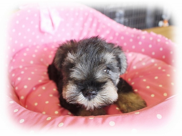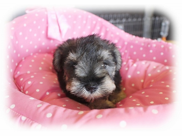 シュナウザーを主力にされているブリーダーさんだと認識しており、ボスちゃんはどうかなあと正直不安でしたがとても可愛く健康的なボスちゃんをいただきました。 掲載されていた写真より実物は想像以上に可愛くて即決し見学させていただいたその日に連れて帰りました。連絡をして、翌日行きますぅって勝手な申し出にも関わらず敏速かつ親切に対応して頂き大満足です。契約に対しても一つ一つ丁寧に説明してくださり、わかりやすかったです。この度は可愛いボスちゃんとのご縁をいただき、本当に有り難うございました。 (大阪府 女性)