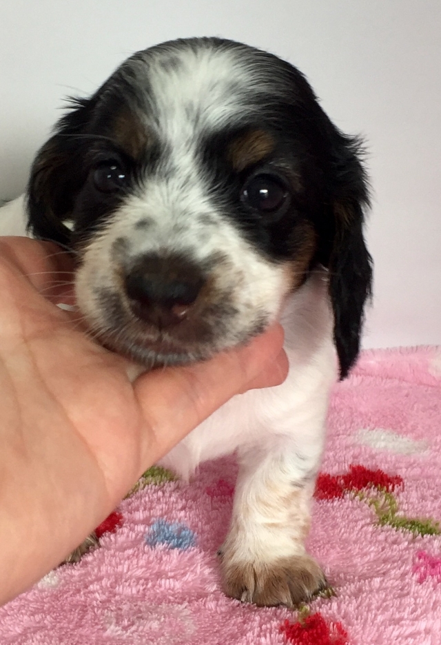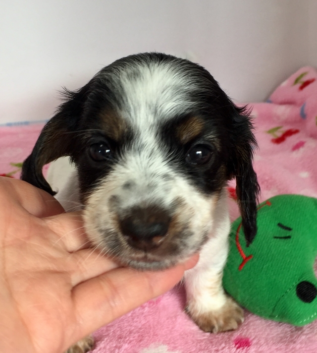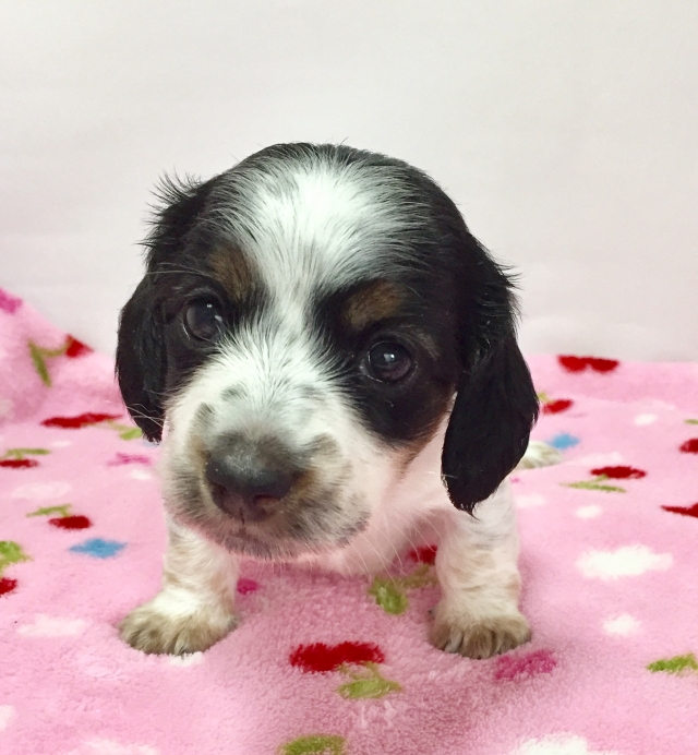 ミニチュア・ダックスフンド(ロング) ブラックタン パイボールド ♀(女の子) 神奈川県【 ブリーダーズ 】