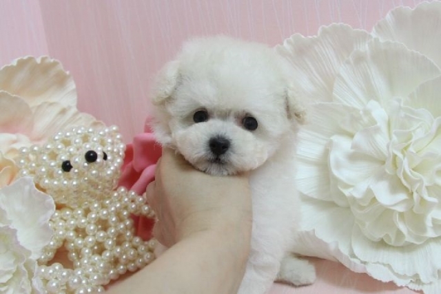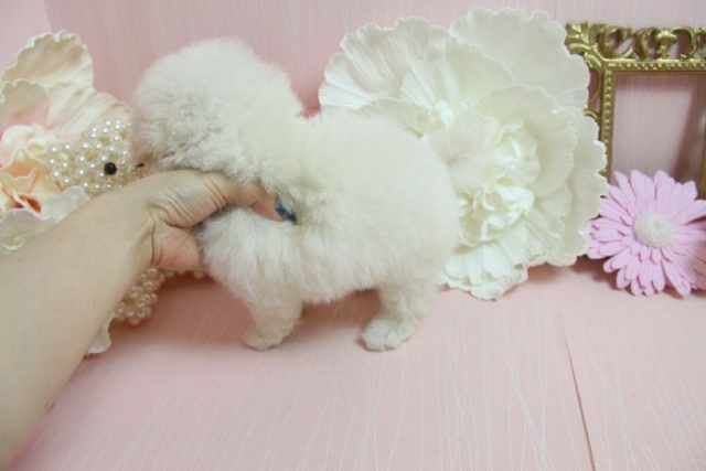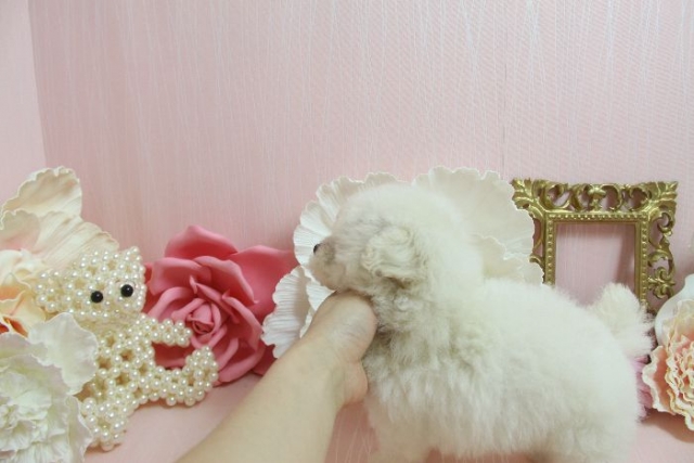 | コメント | 7月18日撮影 ホワイトらしく、 かなり毛量たっぷりでお顔まんまるで可愛いMinaちゃん! 性格はマイペースなプードルにしてはおとなしい タイプです。 7月18日現在 生後58日で体重650gです。 成犬時予想体重は~2.7kg前後のタイニー~トイサイズ予想です。 両親の大きさからするともう少し小さく成長するかもしれませんが 現在は大きめなので、このサイズで飼い主様募集いたします^^ 父 1.5kg 母2kg 1回目のワクチンは接種済みです。 |