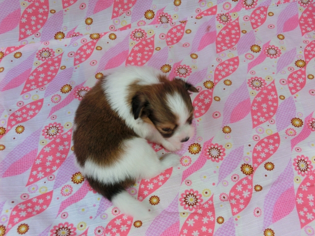 パピヨン ホワイト&レッドセーブル ♂(男の子) 千葉県【 ブリーダーズ 】