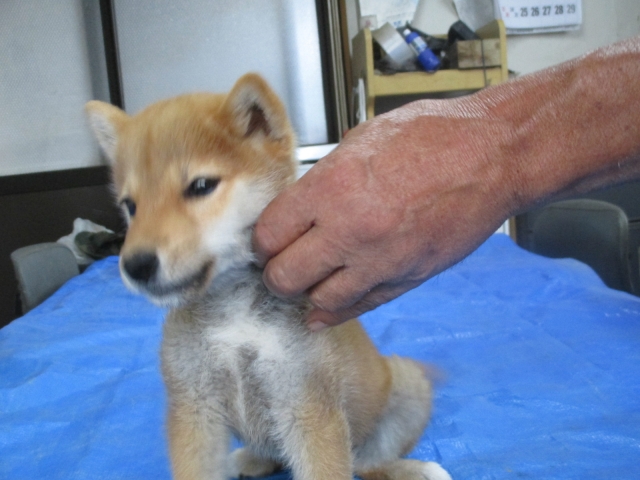 初めて見学で伺った際に、並んで日向ぼっこをしている親犬たちを見て、その時点で高橋さんなら安心だと感じました。事前に希望していたこともあり、母犬と父犬を先に見せていただきましたが、母犬のあまりの人懐こい性格にやられてしまい、実は子犬を見る前に是非譲っていただこうという気持ちになっておりました。 見学の時、譲渡の時といろいろな話をさせてもらい、小さな気付きなども折り込んで教えてもらえるのでやはり柴犬ならこうした専門の方が信頼出来ます。 子犬が我が家に来て二週間が経ち、きょうだいのなかでも一回り小さかったこともあり、やはり成長もやや遅い感じではありますが、母性を刺激された先住犬が頑張って見守ってくれており、予想外ではあるものの家族全員一安心です。 この度は本当にありがとうございました。この子が幸せになれるよう精一杯向き合っていきます。 なお、今後検討されている方への注意事項をひとつだけ書いておきます。問い合わせや見学希望に対しての高橋さんからの返信は電話です。メールでの返信ではありませんので気を付けてください。(宮城県 男性)