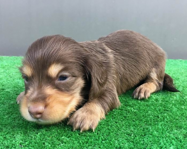 カニンヘン・ダックスフンド(ロング) チョコ&イエロー(クリーム) ♂(男の子) 兵庫県【 ブリーダーズ 】