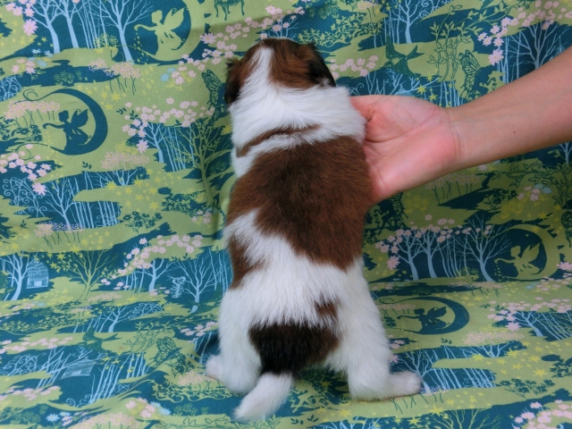 | コメント | 父ターボ インターナショナルチャンピオンコンノアの血統 母マティーニ JKCチャンピオン直子 イギリスチャンピオンアークの血統 イギリス×イギリスの理想的アウトラインブリードです。 成長時の予想体重は3.5~4.5㌔前後 現在好ましくないかみ合わせ、ヘルニアはありません。欠点が出てきた際は改めてお知らせいたします。 当犬舎はパピヨン一筋50年の日本で一番歴史のあるパピヨン専門犬舎です。 日本中の国産のパピヨンで当犬舎の血統が入っていない犬は存在しません。 ご見学は大歓迎ですのでどうぞご連絡の上、おいでください。365日年中無休です。 2013年9月1日より「動物の愛護と管理に関する法律」の改正によって、「生体販売時の現物確認・対面販売」が義務規定となりましたので、最低一度は直接犬舎までご来舎いただかなくてはなりません。従いまして今までのようにネットで写真、動画をご覧になっただけではご購入ができなくなりました。これはすべてのブリーダー・ペットショップも例外がありませんので、ご理解、ご協力のほど御願い申し上げます。 手続きに時間がかるため海外への輸出はいたしません。 スタッフの取得資格 (社)JKC 全犬種審査員2名(社)JKC 単犬種パピヨン審査員1名(社)JKC スチュアート1名(社)JKC A級ハンドラー1名 (社)JKC C級ハンドラー1名 (社)日本愛玩動物協会 愛玩動物飼養管理士1級1名 (社)日本愛玩動物協会 愛玩動物飼養管理士2級2名 (学)AIK 認定グルーマーライセンス1名(学)AIK 家庭犬しつけインストラクター1名(社)ICCキャットグルーマーライセンスB級1名 (学)AIK トレーナーライセンス1名 動物の愛護及び管理に関する法律による動物取扱責任者2名 |