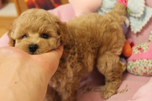 | コメント | ご覧いただきましてありがとうございます。 クリームもしくはアプリコットの毛色の可愛いモコモコな王子様の紹介です。 ◆トイプードル ◆男の子 ◆仮名ヘンリー君 ◆2017年6月17日生まれ ◆お父さん ホワイト(両親JKCチャンピオン、2.4キロ) ◆お母さん レッド(代々レッドのお顔が可愛い系の健康な血筋、2キロ) ◆両親共にPRAクリアですので遺伝性の白内障を発症する事はありません。 現在、兄妹とお母さんと一緒に過ごしており愛情一杯に育っております。 サークル内でのおトイレはほぼ成功しております。 アイコンタクトが通じる賢い子でとっても飼い易い子です。初めての方も初めてじゃない方も多頭飼いの方にも自信を持ってお勧めできる子犬です。 フードも今は離乳食を食べていますが好き嫌いせずちゃんと食べてくれるので安心です。 毛の量がとっても凄いのでどんなカットも楽しめます。お目目がまん丸でお顔も詰まっているのでとっても可愛いです!毛色も優しい色な子なので見ているだけでもとっても癒されます。 性格は人もわんちゃんも大好きなとってもフレンドリーな優しい子です。兄弟犬にも優しく遊んでいる優しい一面も。皆大好き甘えっこちゃんです。 健康面にも心配はなく欠点も今のところありません。 サイズはタイニーサイズの予想です。 是非、ヘンリー君に会いに来てください♡ ☆見学、大歓迎です☆(事前にご予約下さい。) ☆東北自動車道 泉インターチェンジから10分 ☆JR東日本 東北新幹線仙台駅乗り換え 仙台市営地下鉄南北線泉中央駅から10分(東京~仙台間は最速の新幹線はやぶさ号で約1時間半です。) ☆遠方の方もお気軽にご相談下さい。 沢山のお問い合わせお待ちしております。お気軽にお問い合わせ下さい。 |