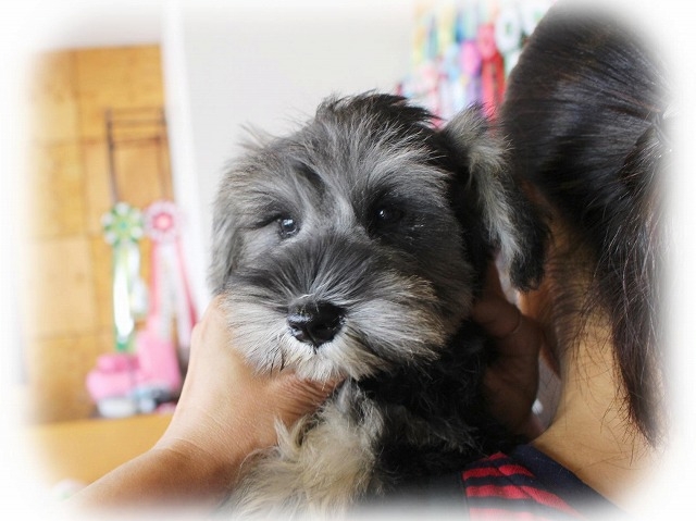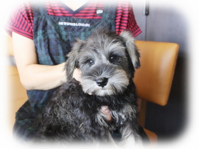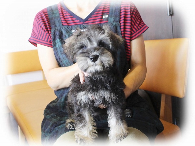 シュナウザーを主力にされているブリーダーさんだと認識しており、ボスちゃんはどうかなあと正直不安でしたがとても可愛く健康的なボスちゃんをいただきました。 掲載されていた写真より実物は想像以上に可愛くて即決し見学させていただいたその日に連れて帰りました。連絡をして、翌日行きますぅって勝手な申し出にも関わらず敏速かつ親切に対応して頂き大満足です。契約に対しても一つ一つ丁寧に説明してくださり、わかりやすかったです。この度は可愛いボスちゃんとのご縁をいただき、本当に有り難うございました。 (大阪府 女性)