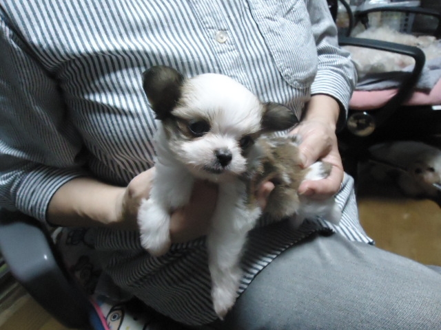 この度ご縁がありまして村島ブリーダーさんから可愛いマルチーズの男の子を譲って頂きました。犬を飼うことは初めてだったのですが2度ほど見学し、アドバイスも頂き、安心して子犬を迎えることができました。何かあれば電話でいつでも相談にのって下さるとのことで心強いです。子犬もとても元気でおトイレもすぐに覚えてとってもいい子です。ありがとうございました。(栃木県 女性)