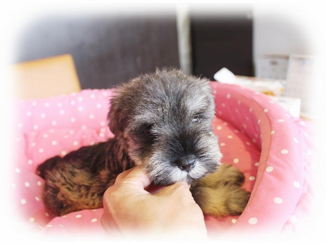 シュナウザーを主力にされているブリーダーさんだと認識しており、ボスちゃんはどうかなあと正直不安でしたがとても可愛く健康的なボスちゃんをいただきました。 掲載されていた写真より実物は想像以上に可愛くて即決し見学させていただいたその日に連れて帰りました。連絡をして、翌日行きますぅって勝手な申し出にも関わらず敏速かつ親切に対応して頂き大満足です。契約に対しても一つ一つ丁寧に説明してくださり、わかりやすかったです。この度は可愛いボスちゃんとのご縁をいただき、本当に有り難うございました。 (大阪府 女性)