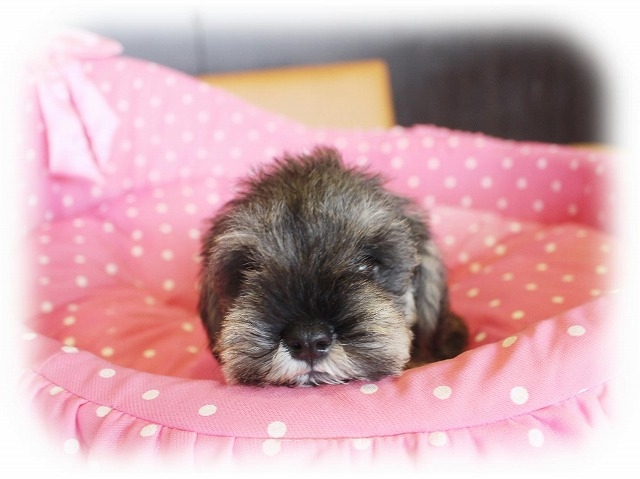 シュナウザーを主力にされているブリーダーさんだと認識しており、ボスちゃんはどうかなあと正直不安でしたがとても可愛く健康的なボスちゃんをいただきました。 掲載されていた写真より実物は想像以上に可愛くて即決し見学させていただいたその日に連れて帰りました。連絡をして、翌日行きますぅって勝手な申し出にも関わらず敏速かつ親切に対応して頂き大満足です。契約に対しても一つ一つ丁寧に説明してくださり、わかりやすかったです。この度は可愛いボスちゃんとのご縁をいただき、本当に有り難うございました。 (大阪府 女性)