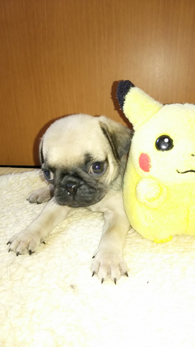 | コメント | お母さんから離れ離乳食開始したばかりでーす。ヽ(^o^)丿 これから少しずつ大きくなってきますが、小さ目のパグになると思います。 元気にモリモリご飯食べています(*^_^*) |