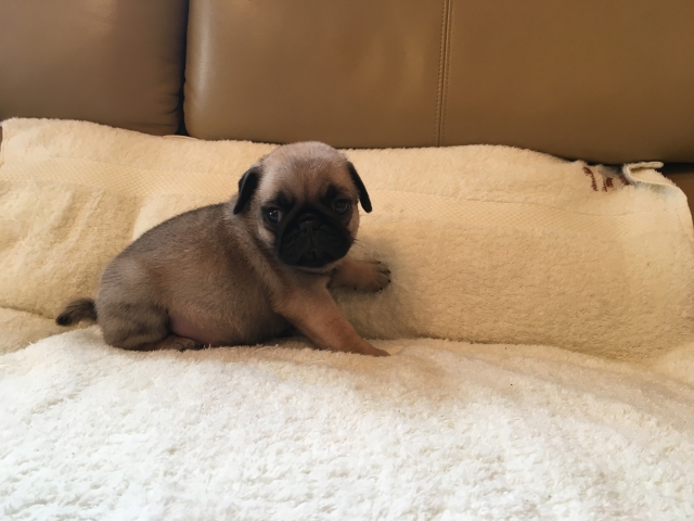 パグの飼育歴は30年以上になります。今年親の代から買っていた 黒パグを亡くしてから家を埋め尽くしているパググッズを見るたびに いつか新しい仔を迎えたいと思うようになりました。 北関東でブリーダーさんを探しているうちに木村様を知り、見学、購入の運びとなりました。 このたび性格も大変おおらかな素晴らしい仔犬をお譲りいただき大変感謝しております。 (茨城県 男性)