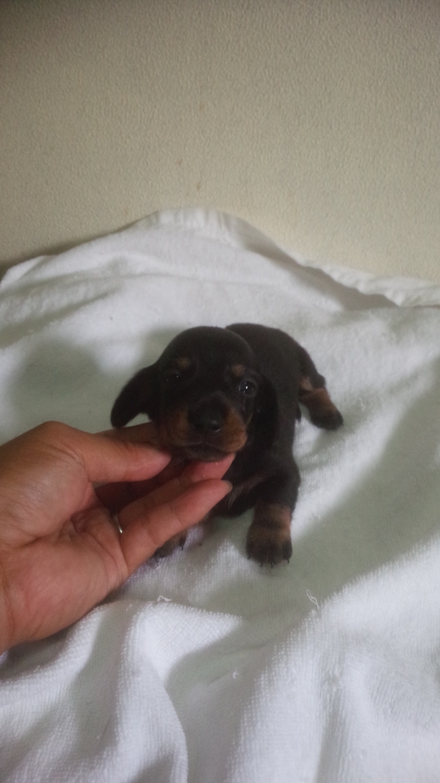 ミニチュアダックス スムース ブラックタンの子犬を探しまくる中、ブリーダーズさんのサイトから上山ブリーダーさんに辿り着きました。問合せ後すぐに連絡を頂き訪問に至る迄の間、度重なる問合せにメール、電話にて毎回本当に親切丁寧にお応え頂きました。神奈川県からでしたが安心して伺う事ができました。子犬対面当日は…なんと可愛い子犬でしょー!毛も艶々で元気いっぱいです!子犬、親犬の事やお世話の仕方、持ち帰り時の注意点等詳しく教えて頂き大切に育ているんだなぁと実感しました。連れ帰った後も子犬の状態を気にして連絡を下さいました。これからも相談させて頂こうと思っています。親切で知識も豊富な信頼できるブリーダーさんです。今回は元気で可愛い子犬をありがとうございました。(神奈川県 女性)