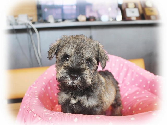 シュナウザーを主力にされているブリーダーさんだと認識しており、ボスちゃんはどうかなあと正直不安でしたがとても可愛く健康的なボスちゃんをいただきました。 掲載されていた写真より実物は想像以上に可愛くて即決し見学させていただいたその日に連れて帰りました。連絡をして、翌日行きますぅって勝手な申し出にも関わらず敏速かつ親切に対応して頂き大満足です。契約に対しても一つ一つ丁寧に説明してくださり、わかりやすかったです。この度は可愛いボスちゃんとのご縁をいただき、本当に有り難うございました。 (大阪府 女性)
