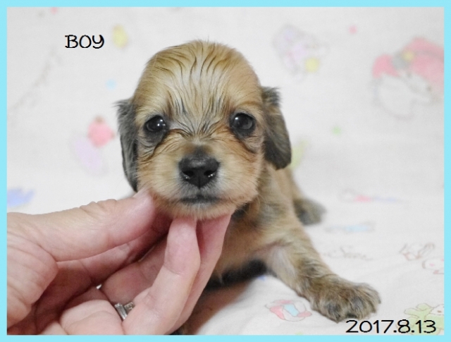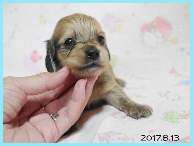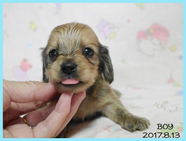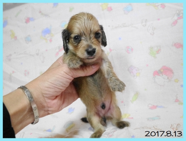 亡くなった愛犬達と同じ、 ワイヤーダックスの子犬を探していましたが、珍しい犬種という事もあり、 なかなか出会えませんでした。 諦めかけた頃、こちらのサイトで可愛い子犬を見つけ、思いきってメールをさせて頂きました。 遠藤ブリーダー様の迅速丁寧な対応で、 お陰様で無事に子犬を迎える事が出来ました。 本当にありがとうございました。 ブリーダーズ様にも感謝致します。 (北海道 女性)