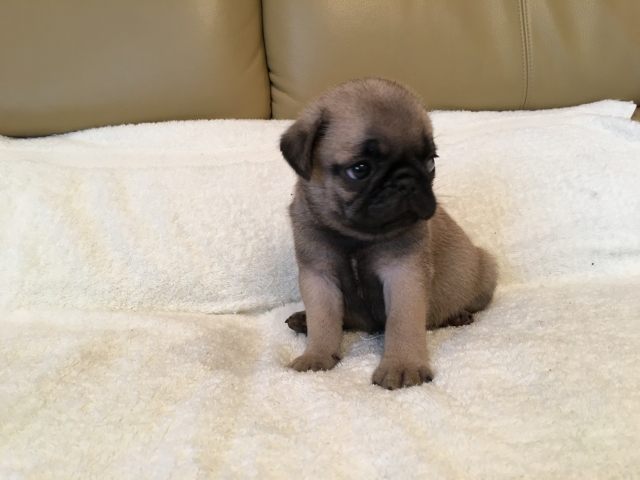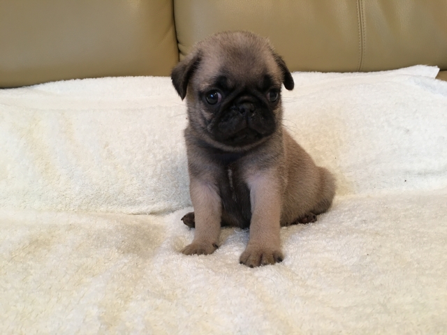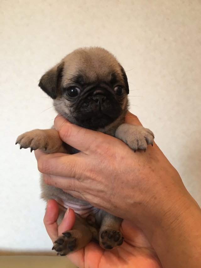 パグの飼育歴は30年以上になります。今年親の代から買っていた 黒パグを亡くしてから家を埋め尽くしているパググッズを見るたびに いつか新しい仔を迎えたいと思うようになりました。 北関東でブリーダーさんを探しているうちに木村様を知り、見学、購入の運びとなりました。 このたび性格も大変おおらかな素晴らしい仔犬をお譲りいただき大変感謝しております。 (茨城県 男性)