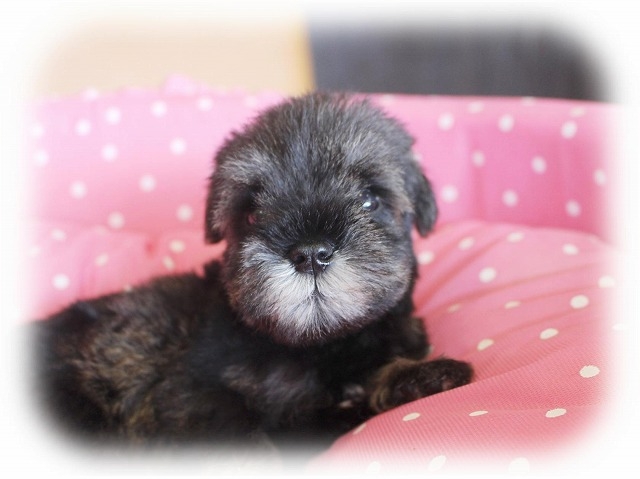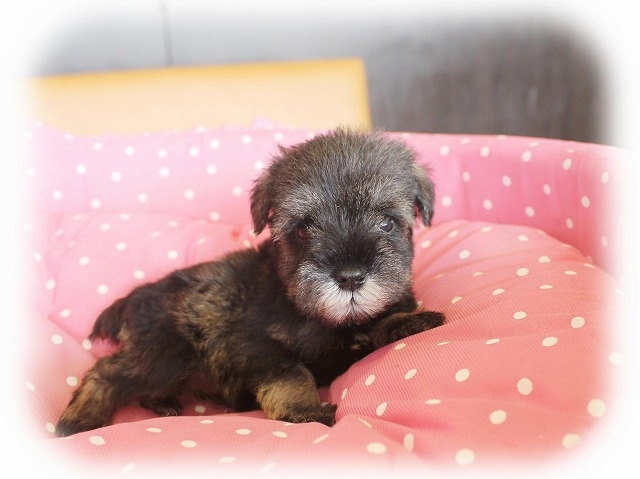 シュナウザーを主力にされているブリーダーさんだと認識しており、ボスちゃんはどうかなあと正直不安でしたがとても可愛く健康的なボスちゃんをいただきました。 掲載されていた写真より実物は想像以上に可愛くて即決し見学させていただいたその日に連れて帰りました。連絡をして、翌日行きますぅって勝手な申し出にも関わらず敏速かつ親切に対応して頂き大満足です。契約に対しても一つ一つ丁寧に説明してくださり、わかりやすかったです。この度は可愛いボスちゃんとのご縁をいただき、本当に有り難うございました。 (大阪府 女性)