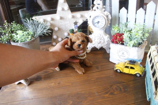 | コメント | 父1.3キロ 母犬2.6 今人気のあるアプリコット♥ 性格も穏やかで初めてのお客様でも飼いやすいですよ 夜鳴き、要求吠え、トイレのしつけはこちらで完璧にしてのお渡しになります。 その他、飼われた後の相談やトリミングに関しましても末永くサポートさせていただきますので初めて飼われる方にもご安心頂けると思います(*´ω`*) ペットショップやオークション出しのブリーダーと違い欧米のブリーディング同様、親や兄弟と社会期を過ごさせることで 人間と暮らした時にスムーズに暮らせるようにしております。 ペットショップと違い生体代金以外は頂きません。 親犬達も家族として朝7時からドックランで遊び、全室冷暖房完備の部屋で過ごし、専門のスタッフや専門学校の方々と協力し合いながら 衛生管理に努めております。 犬舎の特徴としましては、東京や神奈川近郊の為マンションのお客様が8割を占めます。その為小さな1キロから2.8キロまでに収まるように、 母犬を2.8キロまでと決めてブリーディングをしている為、後で極端に大きくなる子はいません。 瞳の丸く大きなところやマズル(鼻先)が短いもの特徴で、父犬、母犬、全て私が全国の可愛いトイプードルを一頭、一頭厳選して親犬としてブリーディングした子犬のみを掲載しております。 こだわりとしては、お客様がお迎えされた後、その子がTV出演、雑誌やカレンダーのモデルとして活躍の場が増え我が家を忘れないでいてもらいたい為、 本気でこだわりを持って常にトイプードルを飼うなら此処だと皆様全員に思われる犬舎でありたいと思います。 ありがたいことに今では、雑誌やTV出演、カレンダーなど多くの出身トイプードルちゃんたちが可愛く撮影されお客様からも喜びの声を頂いております |