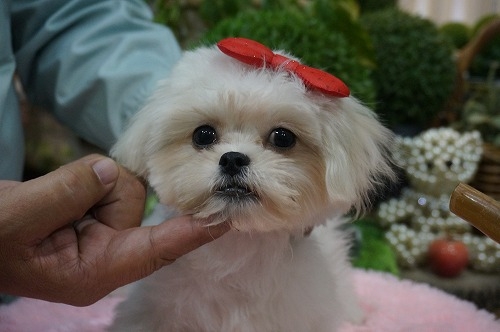 今回、村田ブリーダー様より可愛い子犬を譲っていただきました。引き渡しの時に丁寧に色々教えてもらいましたが、初めての子犬でわからない事だらけ。引き渡し当日の夕方にはもうSOSの電話をしてしまいました。同じ市内で信頼出来るブリーダー様に出会えて幸運でした。これからも宜しくお願いします。(京都府 女性)