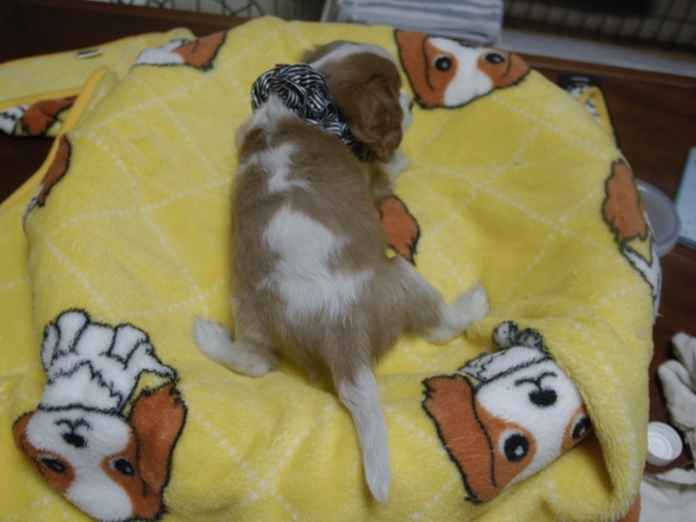 | コメント | お父さんはJKCチャンピオンの吉宗君、お母さんはチャンピオン直子のライザちゃんから生れたダンディな男の子です。(黒リボン君) 健康状態は、問題有りません。 すくすく育っています。 |