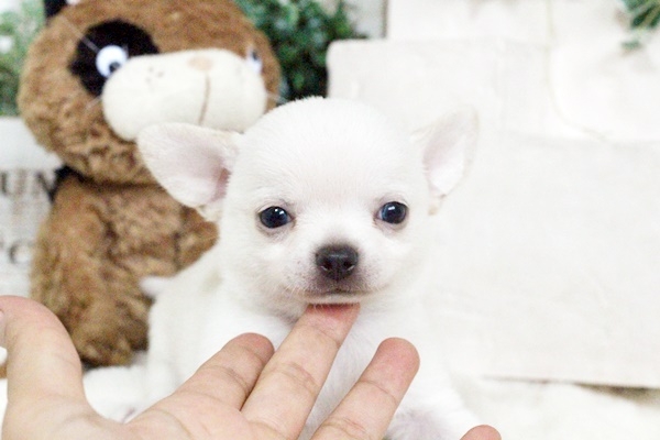 | コメント | ご覧頂きまして、有難うございます。 皆様に喜んで頂けますように、日々努力を重ねております。 健康状態 とても元気です。(*^▽^*)順調に成長しています。 子犬ちゃんの特徴 可愛いお顔のチワワちゃんです。 体重 619g 8/23現在 パパ ホワイト スムース ママ ホワイト スムース 血統書 すべてのわんちゃんに国内血統書は付いていて お渡し後に郵送となります。 パパ・ママわんちゃん達の特徴 見た目もさることながら、性格も重視しております。 気性の荒い子は繁殖に適さないと考えていますので、パパ・ママわんちゃん達は穏やかです。 お問い合わせ・予約について 一時お預かり金を先に入金された方が優先されますので、問い合わせが早くても決まる場合があります。 見学予約を頂いた場合でも、見学予約日前に決まる場合もありますので、ご了承下さい。 その際は事前にお知らせいたします。 遠方の方について 2013年9月から動物愛護法の改正により対面販売が義務ずけられました。 こちらに来られてのご契約をお願いしたい所ですが、ご事情が許さない場合が多々あります。 地域の代行業者様に仲介して頂き販売する事は可能でありますので、ご相談下さい。 その際代行手数料は発生いたします。 伊丹空港・・・10800円 羽田空港・・・16800円 セントレア空港・・・16800円 その他に地域も対応可能です。 空港貨物の場所で対面して気に入らない場合はキャンセルもできます。その際はお預かり金は全額返金されますが 往復の送料、代行手数料全額はお客様ご負担となりますので、ご注意下さい。 お客様、わんちゃんにも負担がかかりますので、動画・画像でよく確認されて決めてください。 お迎えの時期 1回目のワクチン・健康診断をすませ、しっかり食事をとれる状態でお渡しとなります。 生後55日前後を予定しておりますが、健康状態・大きさ等により延期する場合もありますので、ご了承下さい。 ワクチン代 5種 5000円 健康診断書をご希望の場合 別途 2000円 プレゼント お持ち帰りの際のバスケットかご 空輸の場合はそのままお持ち帰りできます。 |