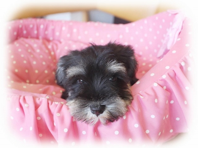 シュナウザーを主力にされているブリーダーさんだと認識しており、ボスちゃんはどうかなあと正直不安でしたがとても可愛く健康的なボスちゃんをいただきました。 掲載されていた写真より実物は想像以上に可愛くて即決し見学させていただいたその日に連れて帰りました。連絡をして、翌日行きますぅって勝手な申し出にも関わらず敏速かつ親切に対応して頂き大満足です。契約に対しても一つ一つ丁寧に説明してくださり、わかりやすかったです。この度は可愛いボスちゃんとのご縁をいただき、本当に有り難うございました。 (大阪府 女性)