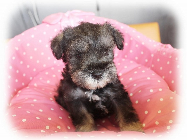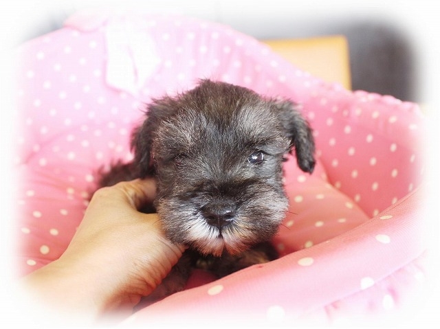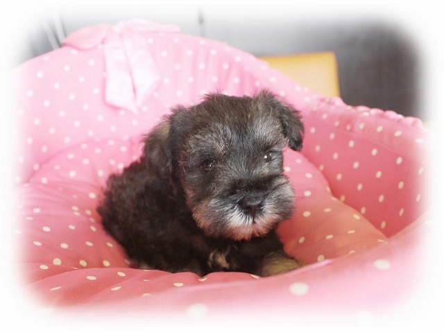 シュナウザーを主力にされているブリーダーさんだと認識しており、ボスちゃんはどうかなあと正直不安でしたがとても可愛く健康的なボスちゃんをいただきました。 掲載されていた写真より実物は想像以上に可愛くて即決し見学させていただいたその日に連れて帰りました。連絡をして、翌日行きますぅって勝手な申し出にも関わらず敏速かつ親切に対応して頂き大満足です。契約に対しても一つ一つ丁寧に説明してくださり、わかりやすかったです。この度は可愛いボスちゃんとのご縁をいただき、本当に有り難うございました。 (大阪府 女性)