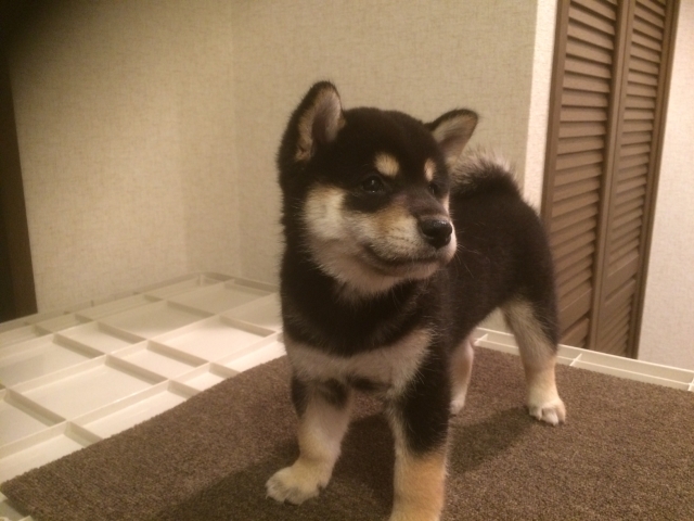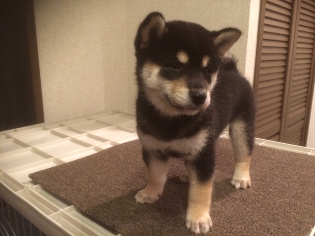 子犬を迎え入れてから1週間がたちましたが、夜鳴き、トイレトレーニングの苦労など全くしていません。とても賢い子で驚かされてばかりいます。黒柴には珍しい柄の入り方に一目惚れをして決めたのですが、性格も穏やかで最高です。この子に決めて本当に良かったです。 津守さんは、凄腕ブリーダーだと思います。これからも的確なアドバイスをよろしくお願いします。 (大阪府 女性)