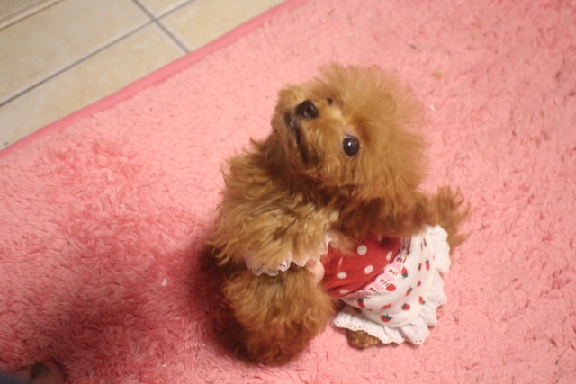 | コメント | 父親母親共2kg前後 小さいサイズの可愛い子 9月2日で530gです。 性格は抜群におとなしくて優しい子です。 良いところを一杯持っている賢い子です。 カラーはレッドです。 4月9日現在 シャンプーしましたら手入れ不足で耳の毛が薄くなっていました。 その為しばらく様子を見て綺麗に耳の毛が揃ってきたら又募集したいと思います。 |