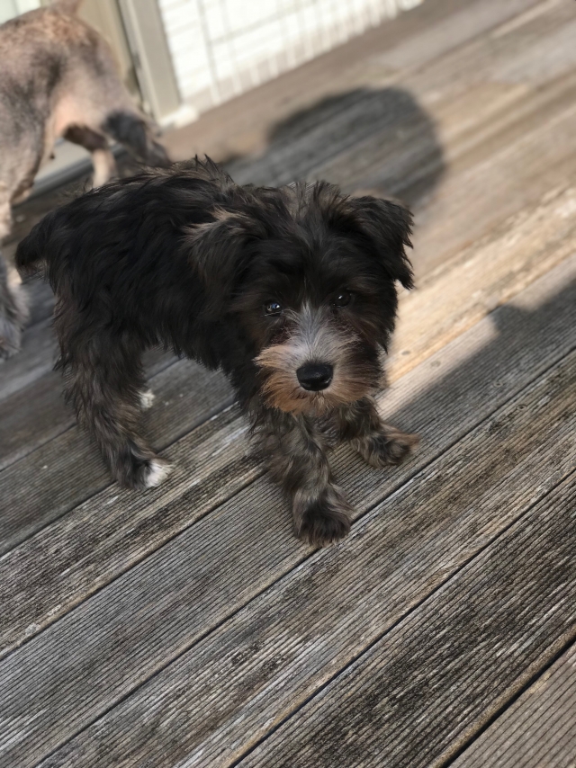 ミニチュア・シュナウザーを我が家に迎えて1週間が経ちました。直前まで岩崎さんのところで、母犬や兄弟犬に囲まれて社会性が身についているのか、いろんな行動の度に、頭が良い犬だなぁと感じています。岩崎さんは今後も相談にのっていただけるということなので、頼りにしたいです。(神奈川県 男性)