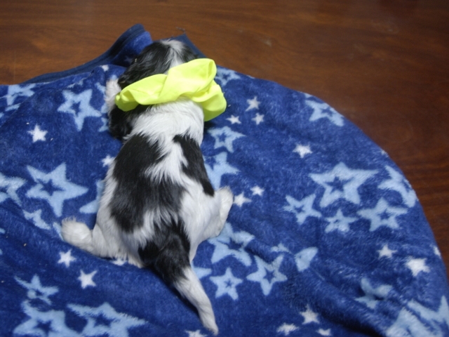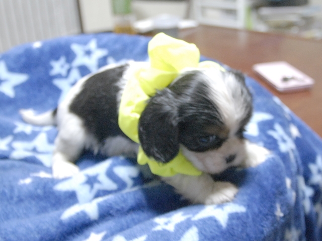 | コメント | お父さんはJKCチャンピオンの家斉君、お母さんはチャンピオン直子のヒンギスちゃんから生れたキュートな女の子です。(黄リボンちゃん) 健康状態は、問題有りません。 すくすく育っています。 |