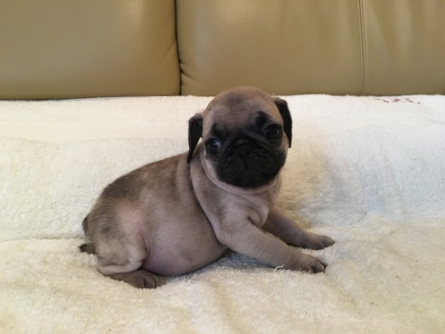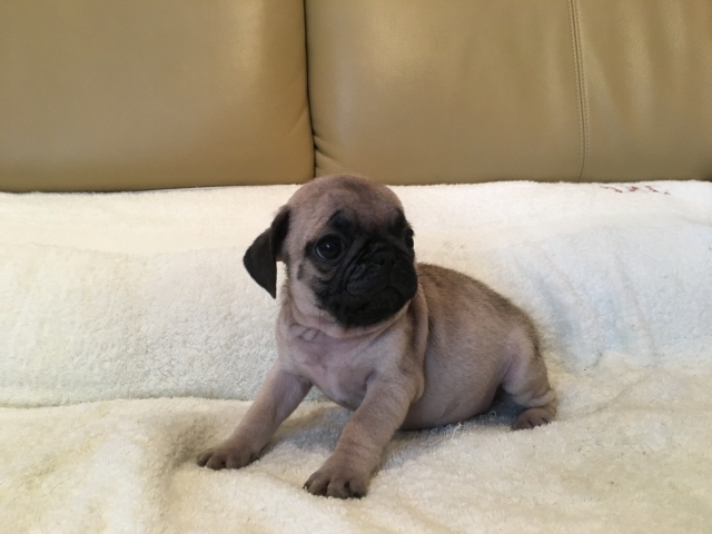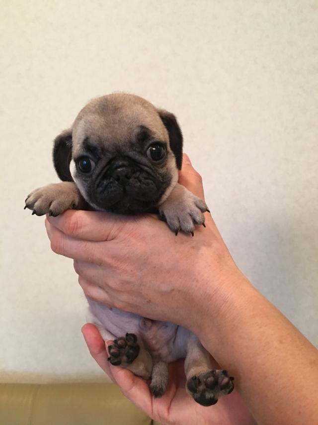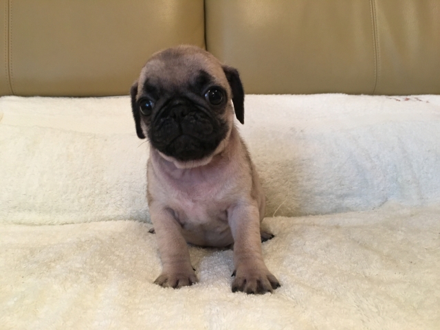 パグの飼育歴は30年以上になります。今年親の代から買っていた 黒パグを亡くしてから家を埋め尽くしているパググッズを見るたびに いつか新しい仔を迎えたいと思うようになりました。 北関東でブリーダーさんを探しているうちに木村様を知り、見学、購入の運びとなりました。 このたび性格も大変おおらかな素晴らしい仔犬をお譲りいただき大変感謝しております。 (茨城県 男性)