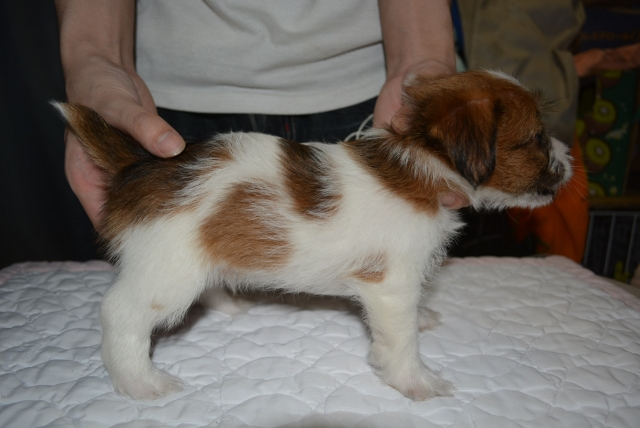 | コメント | 良血統の男の子 父親JKC.CH直子 5Kg 父方祖父JKC.CH 母親JKC.CH直娘6.0Kg 母方祖父JKC.CH 骨量も多くがっしりとした低重心の男の子です。 毛質はブロークン予想。 性格明るく陽気で人懐っこいです。 現在フードをガンガン食べて育っています。 実物はとてもかわいい顔しています。 血統的に攻撃的な性格はありません。 現在のところ欠点はありません。 一度見ていただければきっと気に入っていただけると思います。 見学は土日祝日のみと限りがありますが見学の連絡をお待ちしております。 見学可能日は、9月9.16.17.18.23.24.30日の予定でおりますが、 諸事情によりお受けできない時もあります。 見学は事前にご連絡ください。アポなしはご遠慮ください。 先着順にて決めていただいています。 つれて帰るのは60日前後のワクチン接種後からです。 |