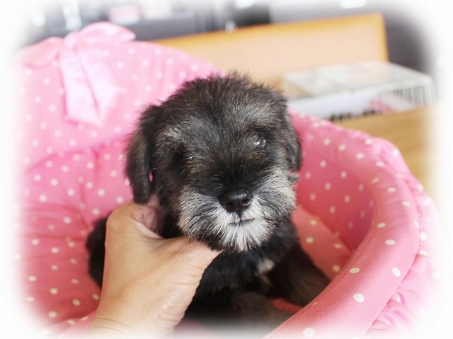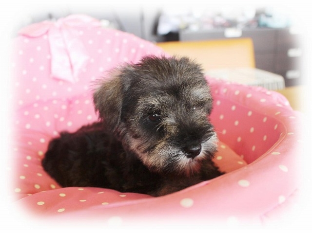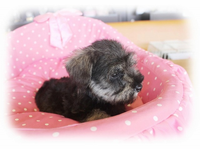シュナウザーを主力にされているブリーダーさんだと認識しており、ボスちゃんはどうかなあと正直不安でしたがとても可愛く健康的なボスちゃんをいただきました。 掲載されていた写真より実物は想像以上に可愛くて即決し見学させていただいたその日に連れて帰りました。連絡をして、翌日行きますぅって勝手な申し出にも関わらず敏速かつ親切に対応して頂き大満足です。契約に対しても一つ一つ丁寧に説明してくださり、わかりやすかったです。この度は可愛いボスちゃんとのご縁をいただき、本当に有り難うございました。 (大阪府 女性)
